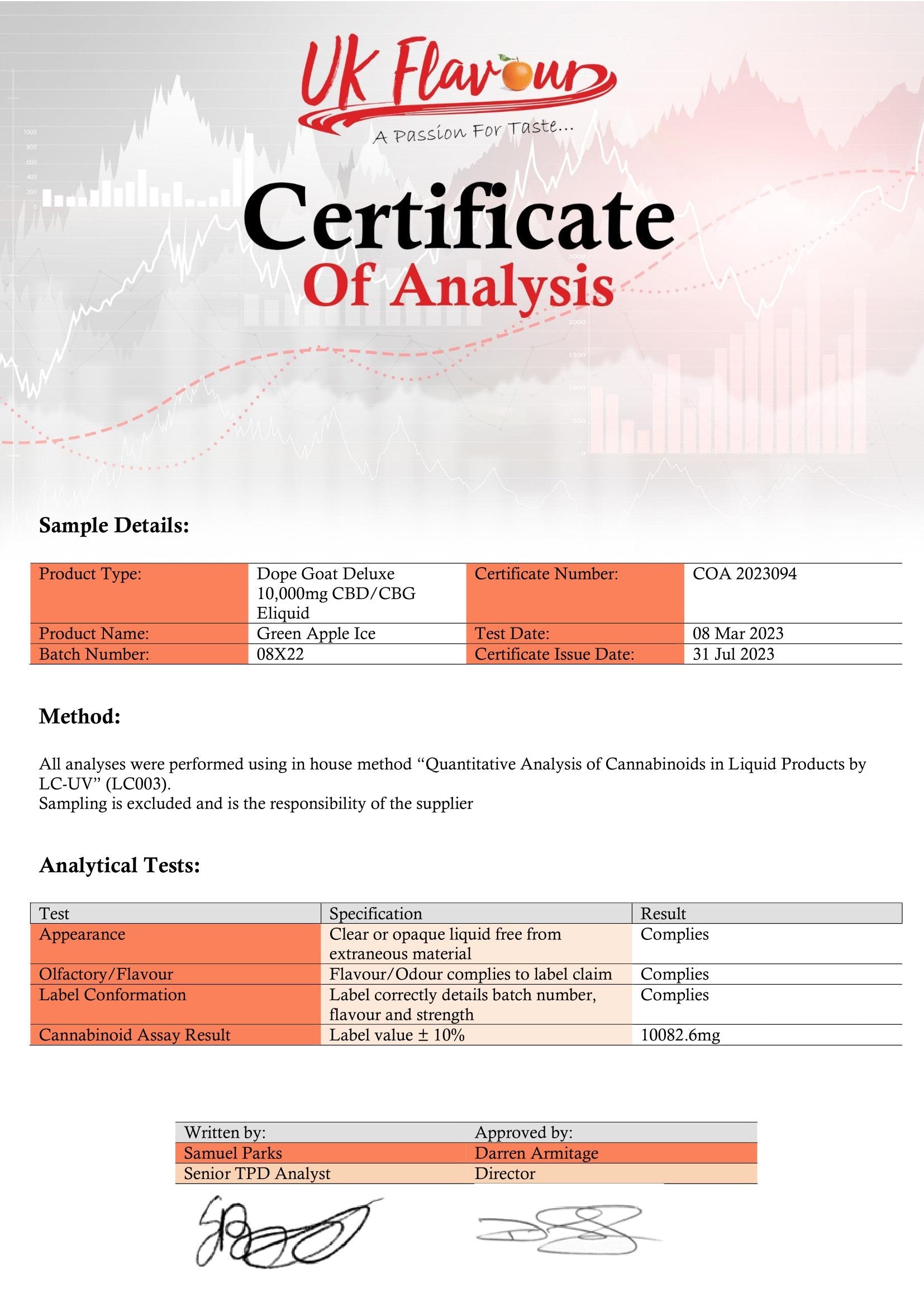 Dope Goat Deluxe 10,000 CBD + CBG E-liquid 250ml is a premium vape liquid expertly crafted for those seeking a potent and flavourful CBD experience. Each 250ml bottle contains a powerful blend of 10,000mg cannabinoids, split evenly between 5,000mg of pure CBD isolate and 5,000mg of CBG isolate, delivering a balanced and effective dose. The e-liquid is mixed at a 70VG/30PG ratio, making it ideal for sub-ohm vaping devices and kits, ensuring dense vapour production and a smooth throat hit.