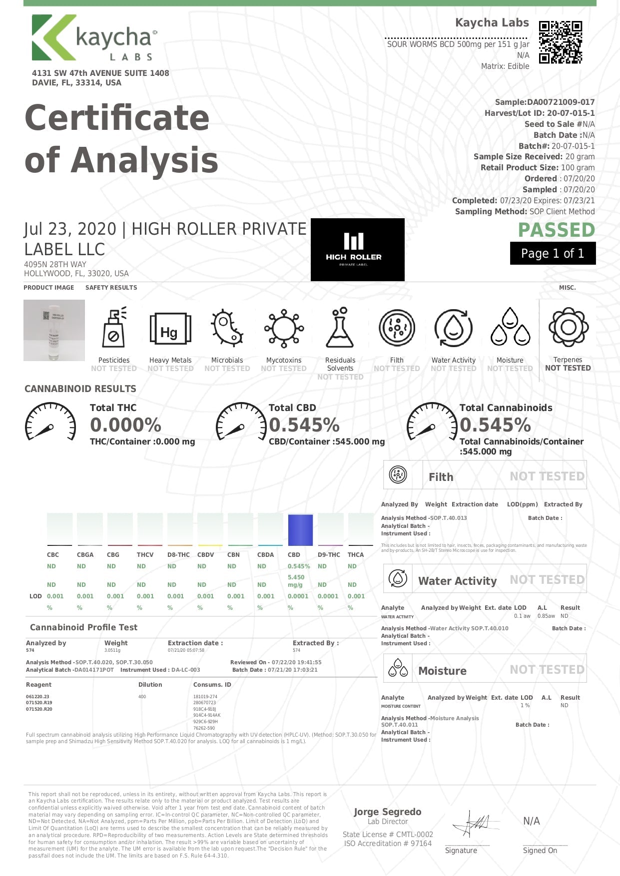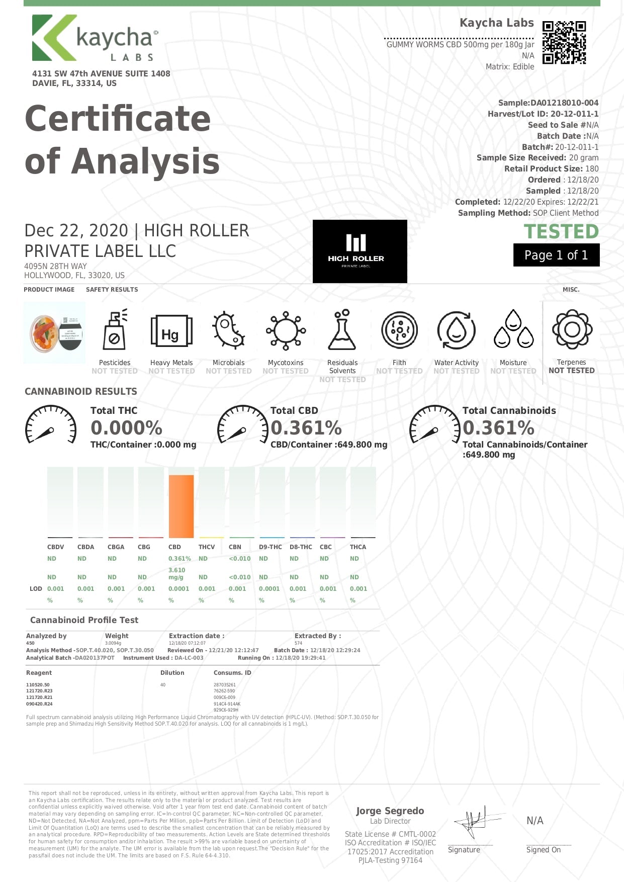 CORN SYRUP (FROM CORN), SUGAR (FROM BEETS), WATER, GELATIN, LACTIC ACID, CITRIC ACID, NATURAL AND ARTIFICIAL FLAVORS, PECTIN (DERIVED FROM FRUIT), FD&C YELLOW #5, FD&C RED #40, FD&C YELLOW #6, FD&C BLUE #1, HEMP EXTRACT CANNABIDIOL (CBD), Coconut oil.